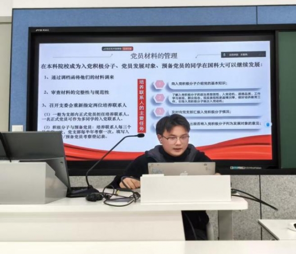 为进一步规范医学院党总支新生党支部党务工作流程,提升支部委员业务能力,明确支委职责,10 月 26 日晚,医学院党总支于雁栖湖校区教二楼 118 教室开展 10 月新生党支部支委培训交流活动,全体支委以 “线上 + 线下” 相结合的方式参会。
