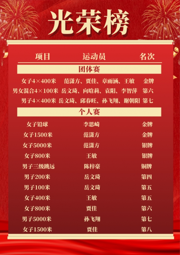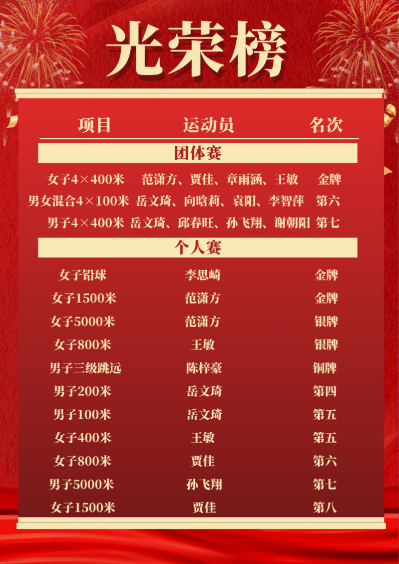注:光荣榜