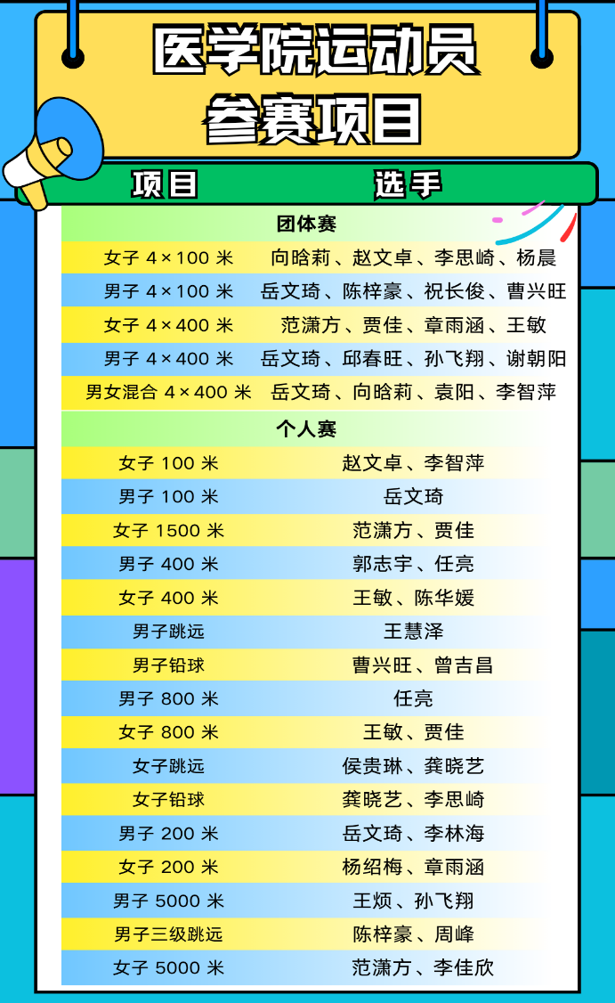 注:医学院运动员名单及参与项目