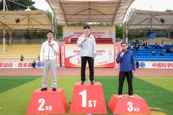 陈梓豪同学激动地说道:“我也非常激动在大家的支持下能够在三级跳远项目取得第三名的成绩!感谢团队莫大的支持!体育的精神将激励我在今后的科研生涯中不断进取,不断奋斗!”