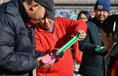 团体游戏环节,氛围热烈:“微笑加油站”里,志愿者与学员默契配合,通过U型槽接力传递乒乓球,在精准协作中打破陌生壁垒;“礼射风范,投壶明志”环节,双方轮流投掷箭头,为达成2次投中目标相互支招、彼此喝彩;“聚力拼图”时,大家分工协作、交流思路,在共同完成拼图的过程中凝聚起跨越差异的友谊。三个环节既充满趣味性,更传递了平等尊重、互助共进的核心理念。