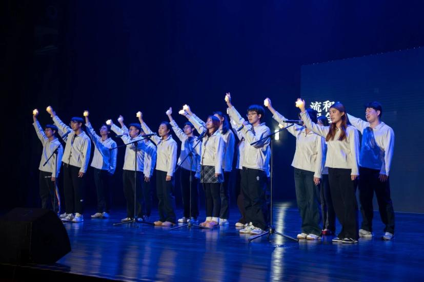 晚会在现代产业学院2025级研究生合唱《夜空中最亮的星》中温情启幕。熟悉的旋律承载着新的期待,为整场晚会铺开一片璀璨的夜空。