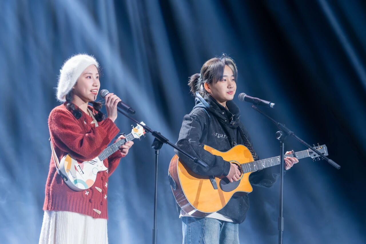 物理科学学院张世振带来温暖治愈的演唱《燕归巢》。歌声如归途灯火,唱出对家园的眷恋与向往。熟悉的旋律唤起心底最柔软的共鸣。